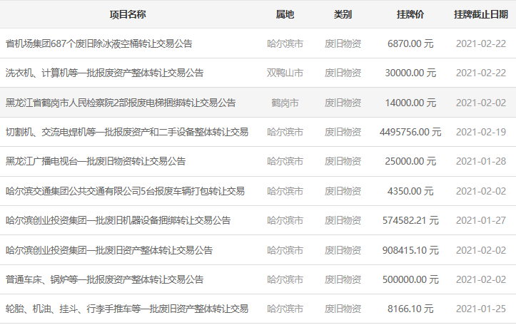 黑龍江聯(lián)交所為企業(yè)廢舊資產(chǎn)處置支招!對(duì)于體量較大、有再利用價(jià)值的“廢品”,企業(yè)可以在評(píng)估價(jià)的基礎(chǔ)上確定掛牌底價(jià),低效無(wú)效“廢品”也可以依據(jù)2020年8月省國(guó)資委印發(fā)的《關(guān)于加快推進(jìn)出資企業(yè)低效無(wú)效資產(chǎn)處置工作的通知》文件精神,以黑龍江聯(lián)交所詢(xún)得價(jià)格為依據(jù)確定掛牌底價(jià),然后在黑龍江聯(lián)交所進(jìn)行公開(kāi)交易,充分發(fā)現(xiàn)買(mǎi)家、發(fā)現(xiàn)市場(chǎng)價(jià)值!