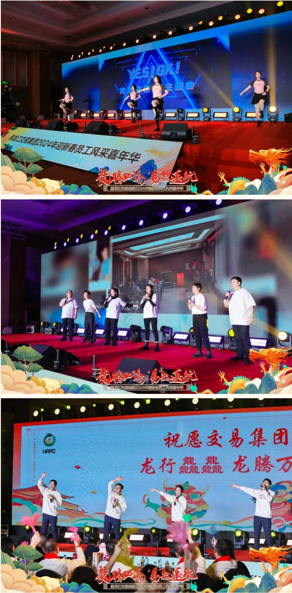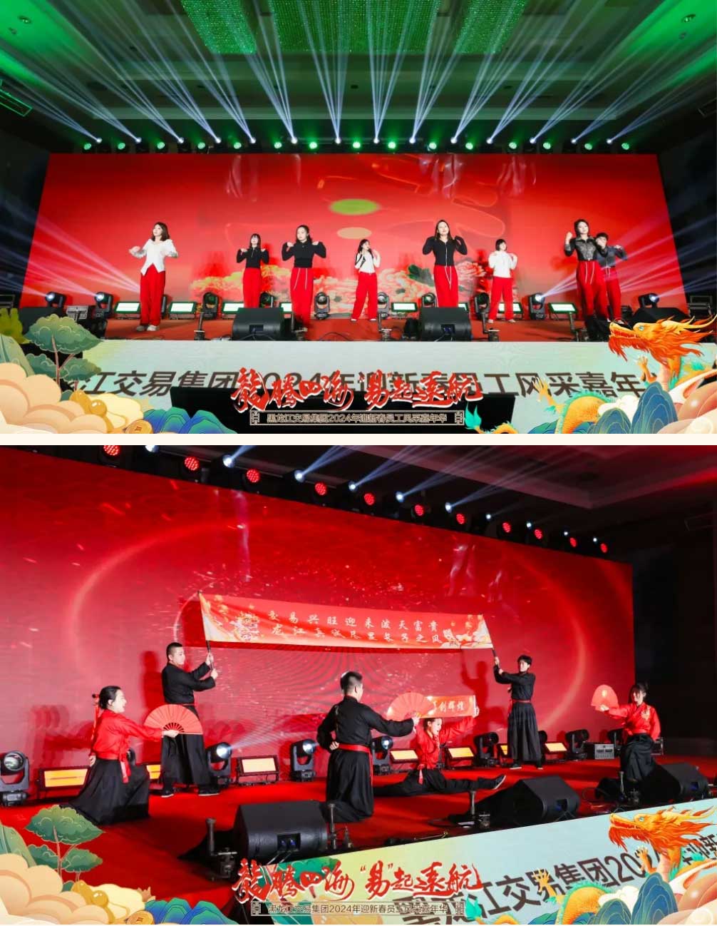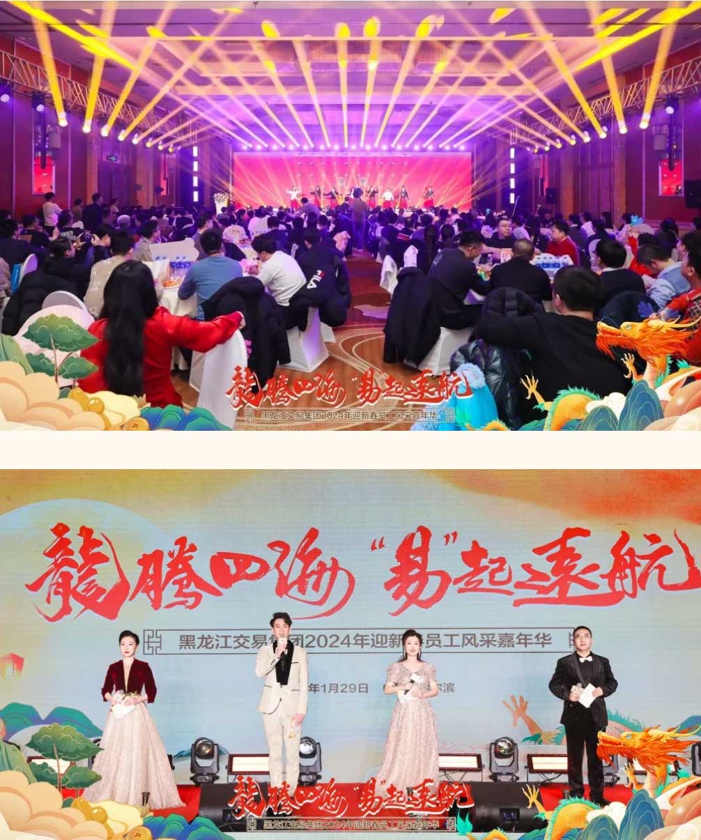 1月29日,由交易集團主辦、招標(biāo)公司承辦的“龍騰四海 ‘易’起遠(yuǎn)航”交易集團2024年迎新春員工風(fēng)采嘉年華活動在哈爾濱成功舉辦。集團全體員工歡聚一堂,共同分享2023年工作收獲與喜悅,展示集團員工青春活力與風(fēng)采,凝聚奮進新征程團結(jié)拼搏必勝信念與力量。