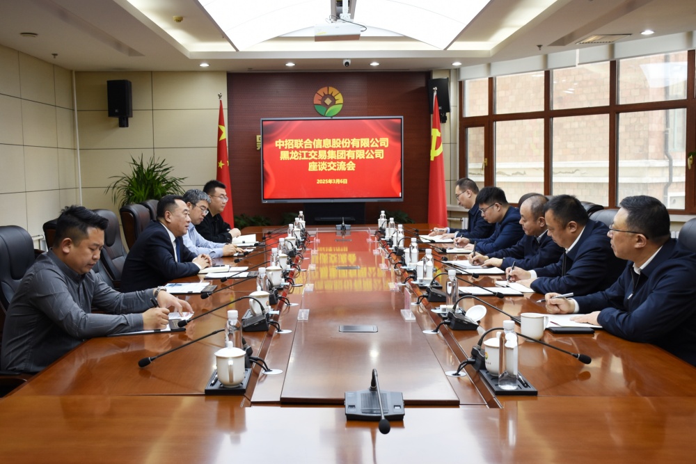 新聞中心 > 集團要聞3月6日,中招聯(lián)合信息股份有限公司(以下簡稱“中招聯(lián)合”)董事長趙斌一行到交易集團調(diào)研交流,交易集團黨委書記、董事長王立峰與來訪客人進行座談。交易集團黨委委員李宏偉,中招聯(lián)合副總裁劉永青、宋巖,及雙方有關(guān)部門、權(quán)屬企業(yè)負責同志參加座談。