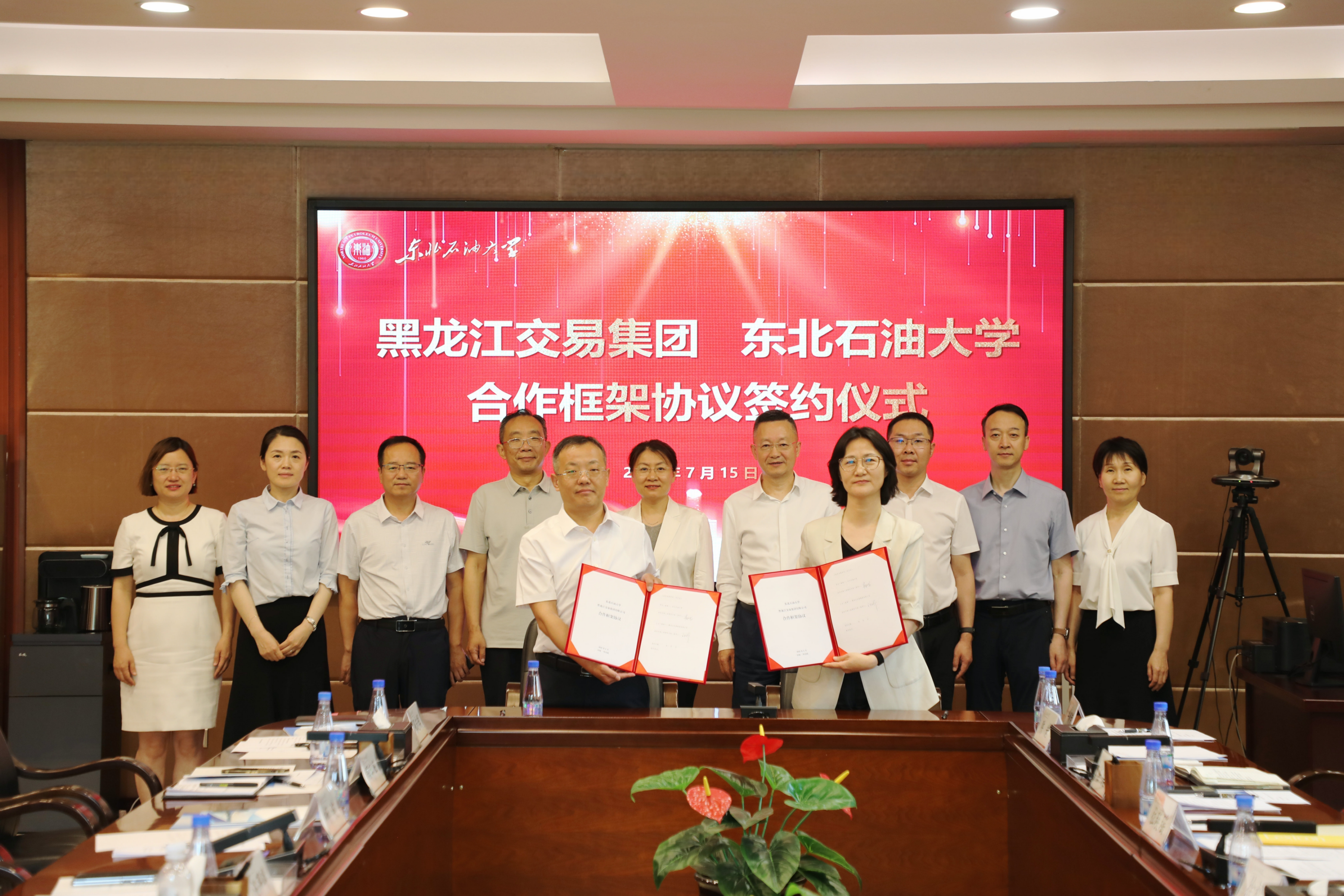 新聞中心 > 集團(tuán)要聞7月15日,黑龍江交易集團(tuán)與東北石油大學(xué)戰(zhàn)略合作簽約儀式在大慶市舉行。交易集團(tuán)黨委書記、董事長夏明禹,東北石油大學(xué)校長、黨委副書記董宏麗,大慶市科技局局長汪嚴(yán)明,大慶高新區(qū)黨工委委員、經(jīng)濟(jì)發(fā)展局局長楊波,交易集團(tuán)副總經(jīng)理徐松之等雙方有關(guān)部門和企業(yè)負(fù)責(zé)同志出席簽約儀式并開展業(yè)務(wù)座談。交易集團(tuán)黨委副書記、副董事長、總經(jīng)理王志昕、東北石油大學(xué)副校長楊二龍分別代表雙方簽署合作協(xié)議。