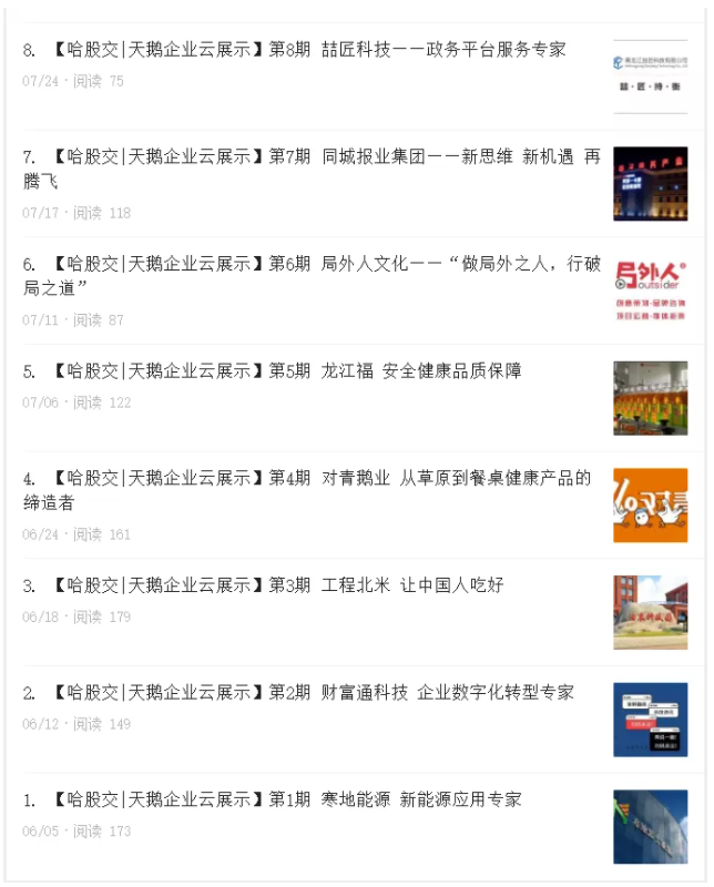 2020年,哈股交以“展示龍江企業(yè)風(fēng)采,對(duì)接資本市場(chǎng)服務(wù)”為行動(dòng)宗旨,在疫情期間推出“天鵝企業(yè)云展示”公益服務(wù),助力企業(yè)復(fù)工復(fù)產(chǎn)。