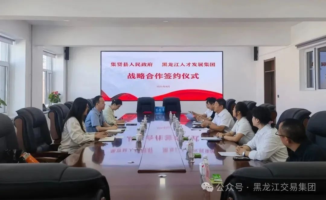 新聞中心 > 子公司動(dòng)態(tài)8月14日,黑龍江人才發(fā)展集團(tuán)與集賢縣人民政府舉行戰(zhàn)略合作簽約儀式,雙方就人才引進(jìn)、培養(yǎng)、人力資源服務(wù)及管理咨詢等人才工作全領(lǐng)域達(dá)成合作意向,政企攜手為集賢縣高質(zhì)量振興發(fā)展探索人才支撐新路徑。黑龍江人才集團(tuán)董事長(zhǎng)牛順榮、集賢縣委副書記鄭超出席簽約儀式,黑龍江人才集團(tuán)副總經(jīng)理邢筱菲、集賢縣委組織部四級(jí)調(diào)研員邢繼峰、集賢縣人社局局長(zhǎng)、黨組書記趙俊鵬及雙方有關(guān)負(fù)責(zé)同志參加座談交流。