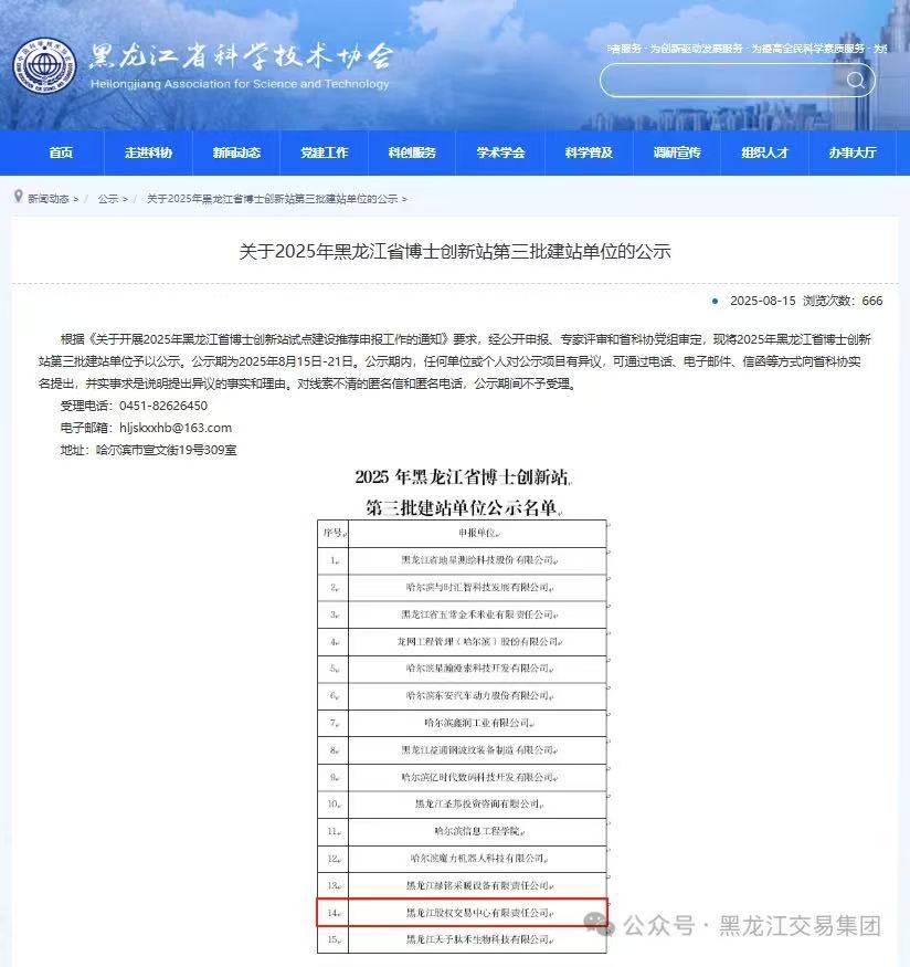 龍江股交獲評黑龍江省博士創(chuàng)新站建站單位