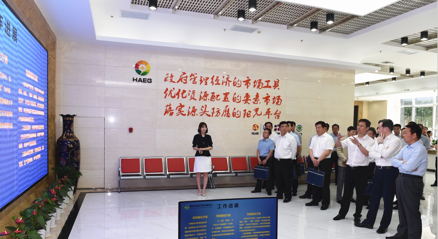 7 月24日,省金融辦主任朗國明率有關處負責同志到省產權交易集團調研指導工作。集團黨委書記、董事長孫光遠代表班子做工作匯報,總經理常玉春及有關人員參加調研座談會。 朗國明一行首先在一樓大廳聽取了集團各業(yè)務板塊建設情況,重點了解了農村產權交易和碳